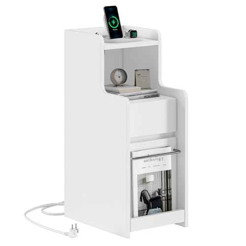 【Nachtschrank mit Ladestation】Dieser Nachttisch ist mit einer Steckdose und zwei USB-Anschlüssen versehen, sodass Sie Ihr Handy, Tablet, Laptop oder andere Elektrogeräte gleichzeitig mit Strom versorgen können. Dank des 1,5 m langen Kabels können Sie den kleinen Beistelltisch in jeder gewünschten Ecke stellen – alles bleibt in Ihrer Reichweite