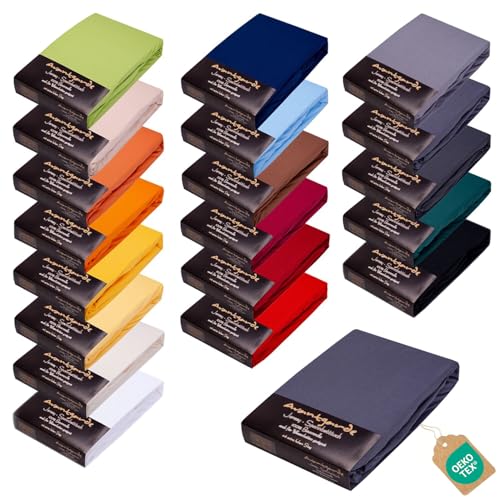 GRÖSSE: Baumwolle Jersey Spannbetttuch in der Größe 180 x 200 bis 200 x 220 cm mit extra hohem Steg (40cm) – geeignet für Wasserbetten, Boxspringbetten und alle Matratzen bis zu 35cm Höhe in den Größen 180 x 200, 180 x 210, 180 x 220, 200 x 200, 200 x 210 und 200 x 220
