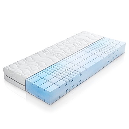 ✅ ERHÄLTLICHE GRÖßEN UND HÄRTEGRADE: 80×200-cm, 90×200-cm, 100×200-cm, 120x200cm und 140×200-cm in jeweils H2 (bis 80kg) oder H3 (bis 120kg)