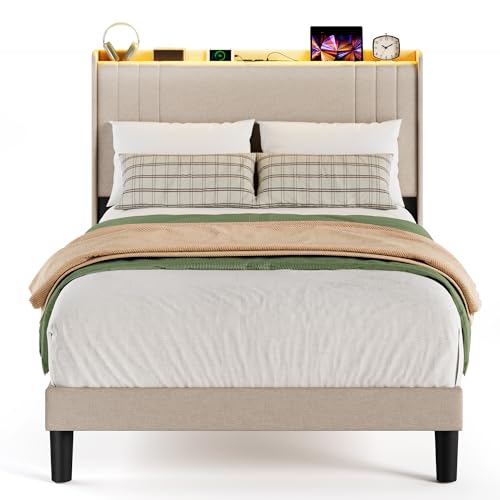 Mit LED-Licht und Steckdosen: Dieses gepolsterte Kopfteil verfügt über eine elegante LED-Lichtleiste und Steckdosen (2 Wechselstromsteckdosen, 2 USB-Anschlüsse) für bequemes Laden und Lesen in der Nacht. Die dimmbaren Lichtfarben verwandeln eine romantische und fröhliche Atmosphäre im Schlafzimmer.