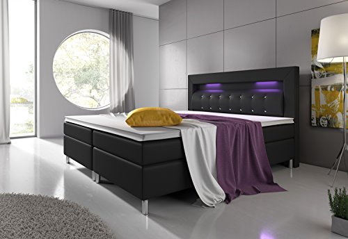 Mit vormontierten Beschlägen zur Befestigung eines Kopfteiles, Hohe Belastbarkeit & Stabilität Boxspringbett 180 cm x 200 cm Schwarz, 5 cm Komfort Schaum Topper