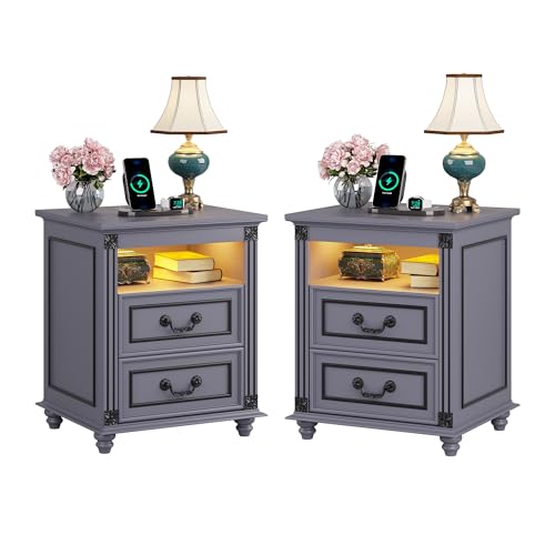 【Nachttische mit 3 Arten von Ladestationen】Dieses Schlafzimmermöbel ist mit 1 USB-Anschluss, 1 Typ-C-Anschluss und 2 Steckdosen ausgestattet, was das Laden von Kopfhörern, Tablets, Laptops und anderen mobilen Geräten erleichtert.